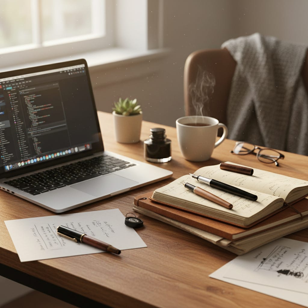 За это время, особенно летом, я не выискивал новых приложений, не сидел активно в тематических пабликах. Я минимизировал использование приложений, пересмотрел потребности и бывало несколько дней не садился за макбук. Регулярно писал в бумажный блокнот, используя перьевые ручки. Даже собрал небольшую коллекцию из Lamy safari, Kaweco, Kakuno Pilot и Wind Sung 630. Сейчас пользуюсь только последней.